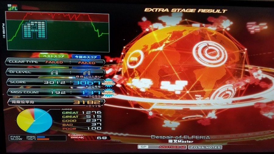 スコアは、微妙だったけど過去最小BP更新 いつもは最後でゲージなくなるけど、48%も残って嬉しかった