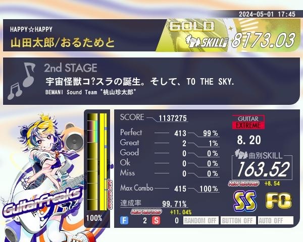 山田健志郎さんのe-amusementアプリ投稿詳細(GITADORAタグ)