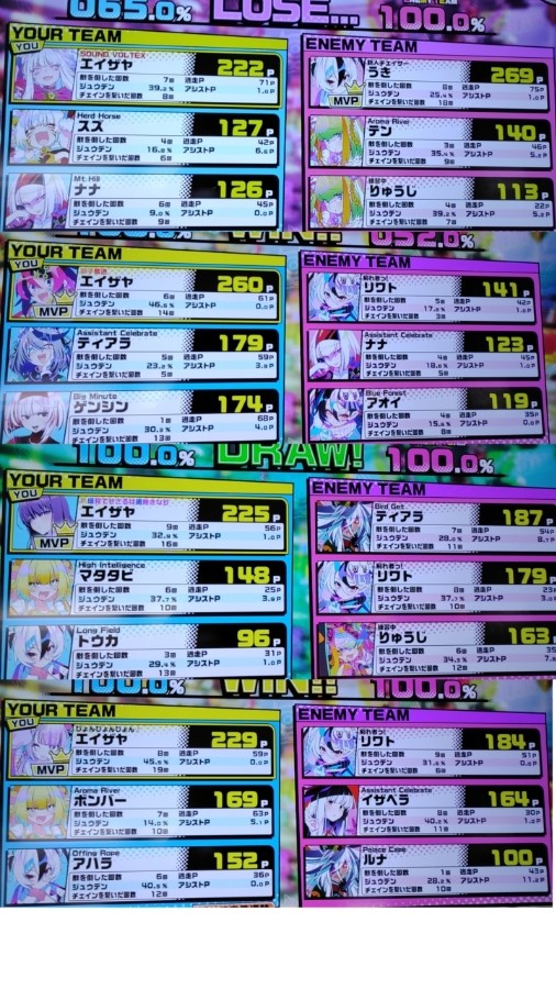 今日のチェイス 1@サカ1 うきさんナイスゴール…! だいぶ深追いしてしまった…反省、 サカ1ってCPU充電してくれないよね…なんでだろ。 2@サカ1 元エースゴール! CPUのジョウカちゃんを抱えるだけで戦力の質がガクッと下がるのなんとかならないだろうか… 仮に消したとしても今度はチノンかボタンがチアモが標的になるだけだから良いのかもしれないが… 3@ナワ2 流石にきついか、 ナワ2ならCPUもそこそこ充電してくれるからマシだろうか、 4@ナワ2 ゴール! キラスラが強い!…ってわけでもない! キラスラを持ち込みにくいマップでキラスラを無理やり運用するのが私のビルドなので別の型を考えとく必要あるかもな…