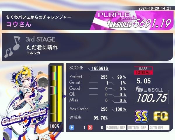 10/20日分、ただ君に晴れ(赤ベース)をプレイ