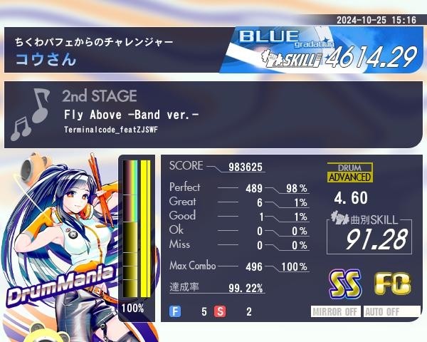 10/25日分、Fly Above(黄ドラム)をプレイ