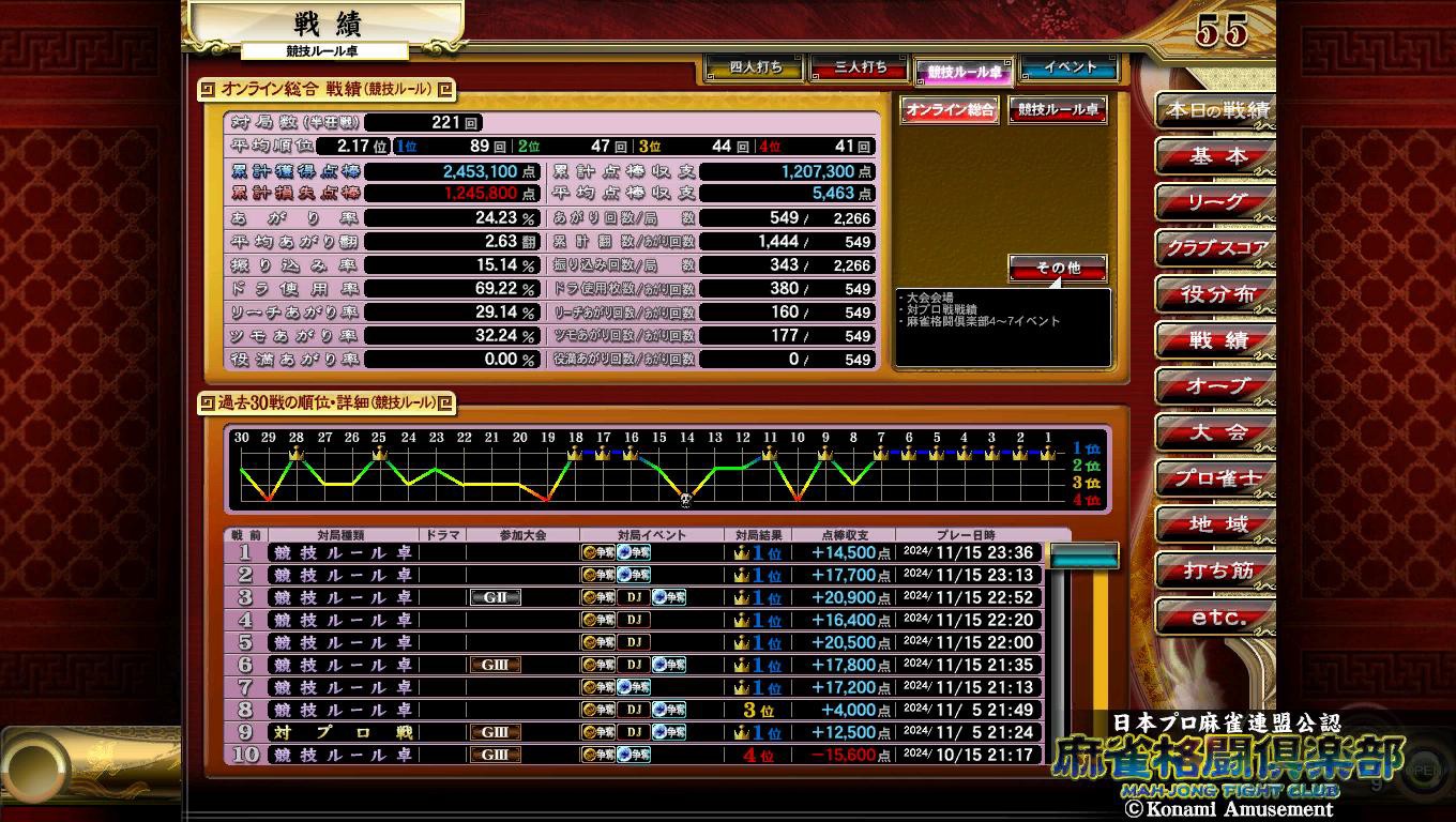 疲れた 競技卓を始めたら7戦7勝追加クレ無し 閉店終了