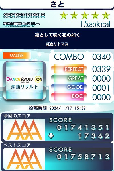 #DanEvo #松エボのような何か 2日目 ああああああああ 究極舞踏(全パーフェクト) いくと思ったのに 最後のほうでリップル外した なんてことないはずのリップル ダンスエボリューションアーケード 凛として咲く花の如く 難易度MASTER