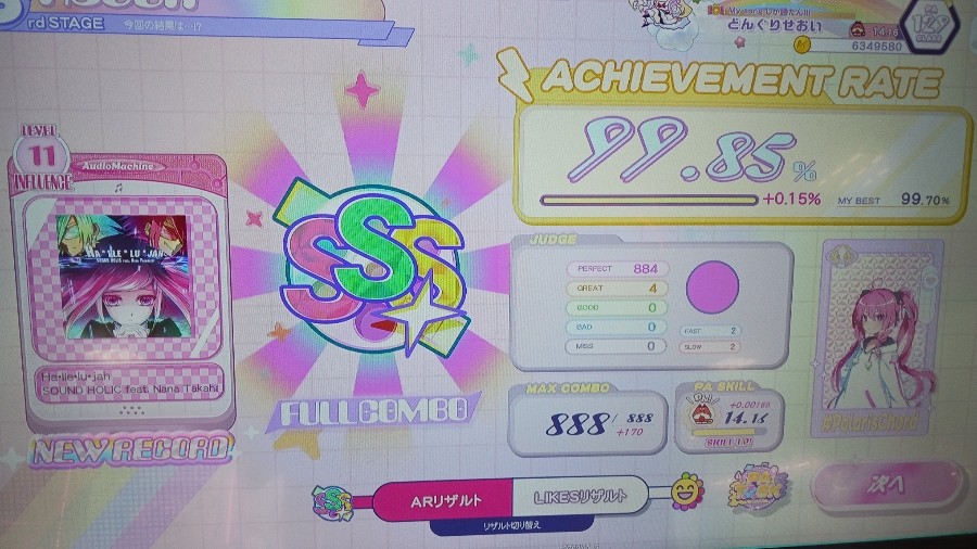 ハレルヤといえば例の3連打がトリル認識用に幅違いになって降ってきたのですが……こんなもん片手で縦連処理すれば余裕なんですよ!!!!!