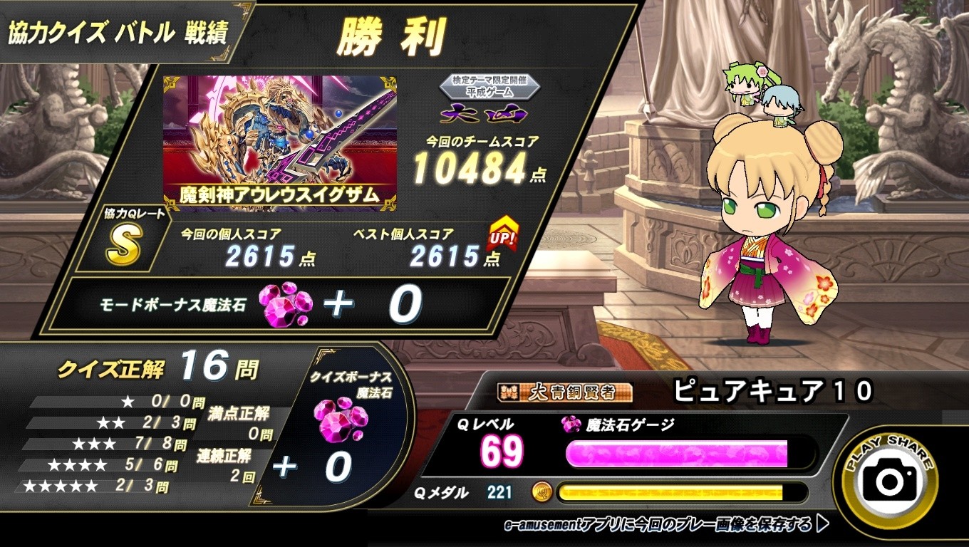 夢原@ピュアラブゲッターさんのe-amusementアプリ投稿詳細(クイズマジックアカデミータグ)