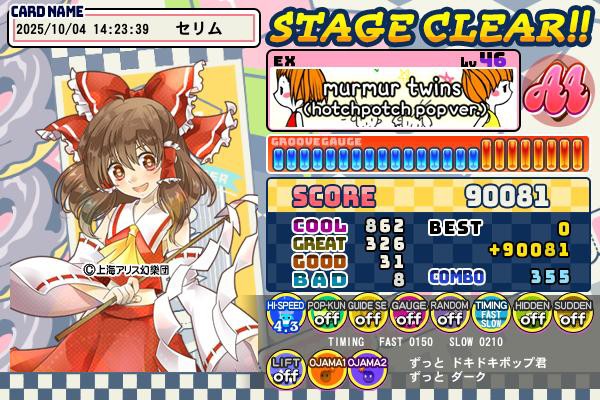 セリムさんのe-amusementアプリ投稿詳細(pop'n music High☆Cheers!!タグ)