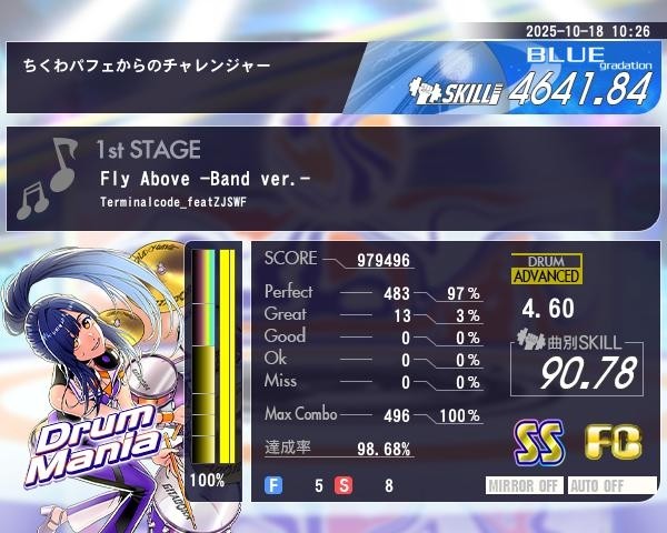 10/18日分、Fly Above(黄ドラム)をプレイ
