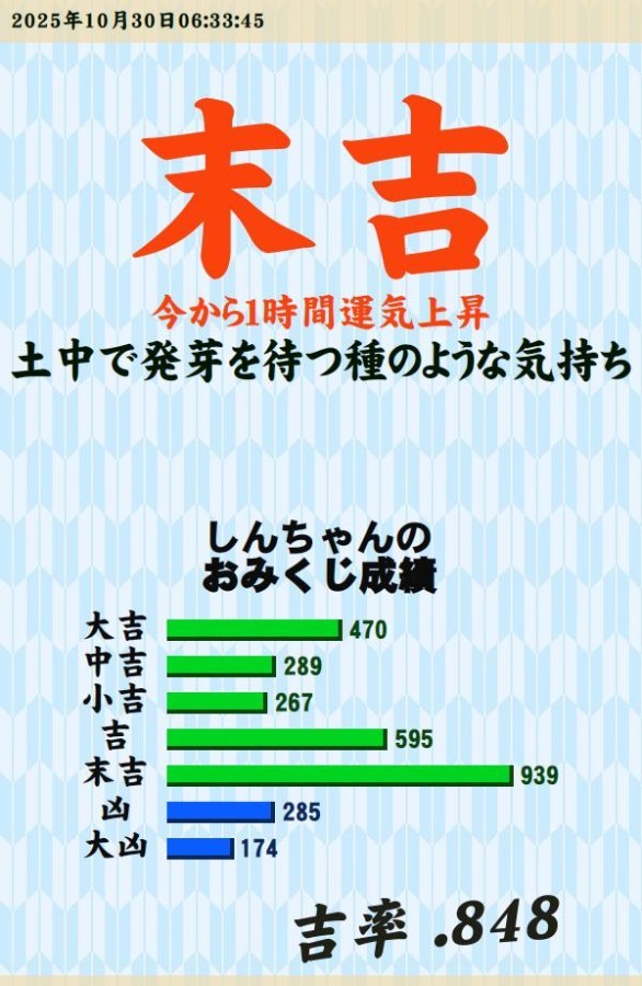 今日のおみくじ! おはこんばんちわ☆ https://p.eagate.573.jp/gate/e/toomikuji.html?from=article