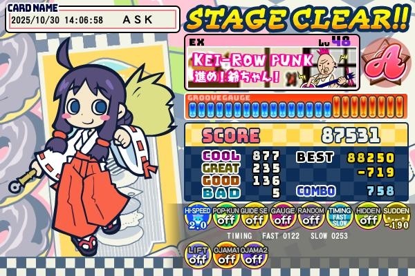 ask-7さんのe-amusementアプリ投稿詳細(pop'n music High☆Cheers!!タグ)