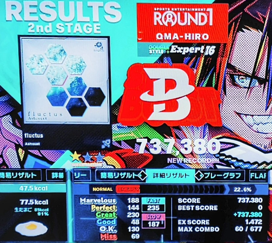 DDRで体動かしました ダブル☆16 終盤危なかったですが、なんとか踏みきり、クリアだけはできました