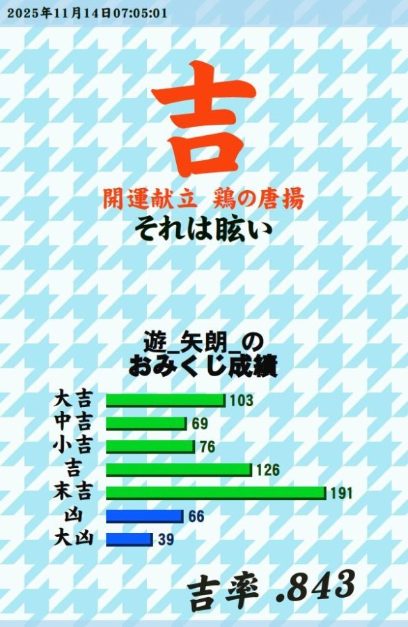 今日のおみくじ! おはようございます このメニューのを いただきます https://p.eagate.573.jp/gate/e/toomikuji.html?from=article