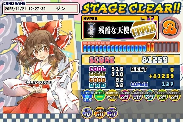残酷な天使のテーゼ UPPER 初見クリア! ギリギリクリアできた