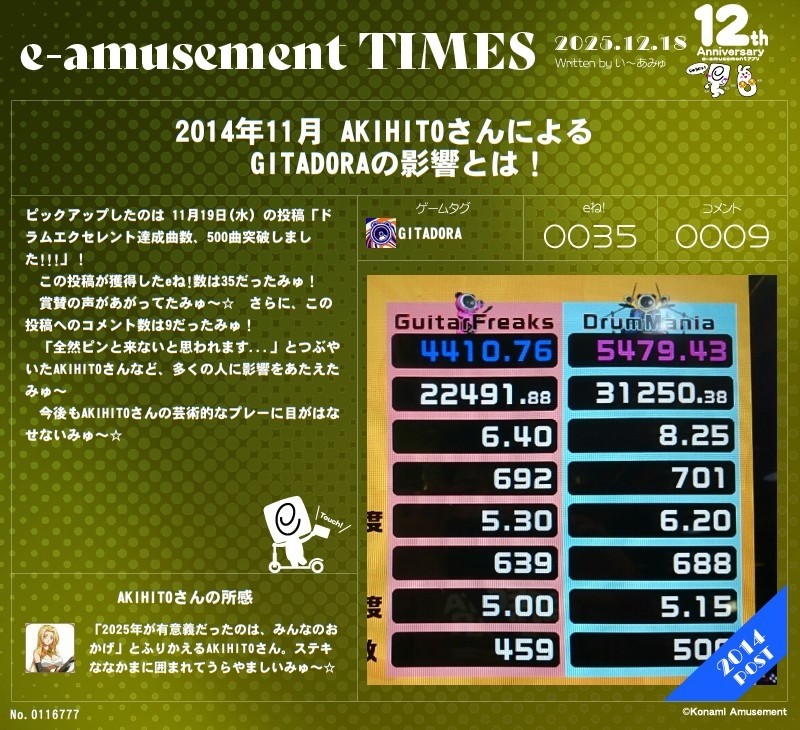 AKIHITOさんのe-amusementアプリ投稿詳細(い~あみゅ新聞タグ)