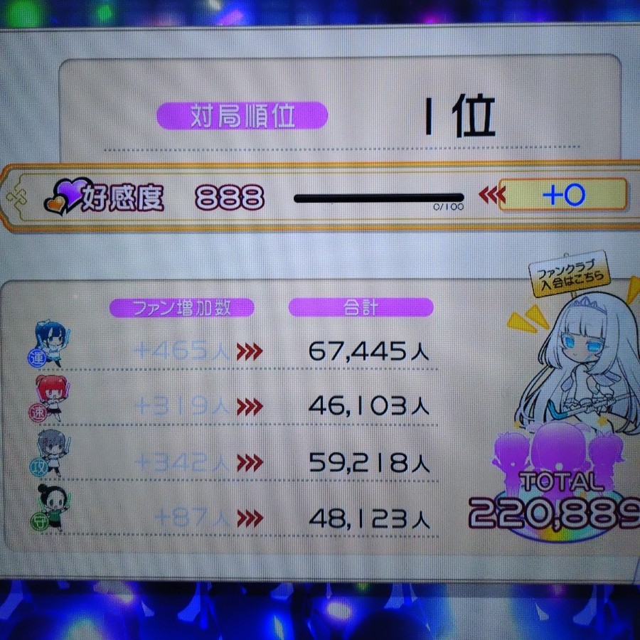 直前にボロ負けした相手がそのまま次戦の相手になるのはよくありますが、順位の上下がそっくり入れ替わるのもよく考えれば不思議ですよね✨ここまで来たら好感度1000到達目標に頑張ります。