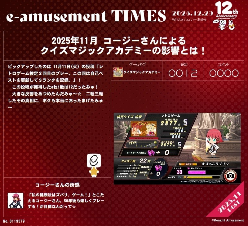 コージーさんのe-amusementアプリ投稿詳細(クイズマジックアカデミータグ)