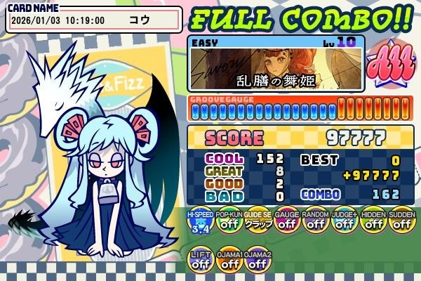 '26 1/3日分、乱膳の舞姫(E)をプレイ ※ジャムフィズ台にて