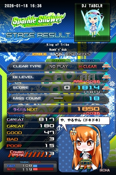 今日のランプ更新はこちら。 星10白ランプ 穴譜面の同時押しキッツいw FLIPかけようかしら…