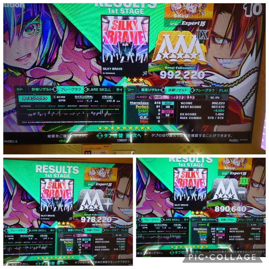 前回の残り。 シルキーさん、AAA&フレアⅨ&緑丸ゲットです! 15に頻発する16分3発の渡りが当然のようにあるのと、 地味に遠い配置と捻りが多くて体勢を崩しがちなんで、 まとめてグレが出やすい。 スコア狙いは配置に慣れたら勝確です。
