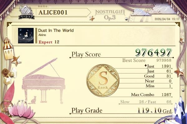 だーすありすさんのe-amusementアプリ投稿詳細(ノスタルジア Op.3タグ)