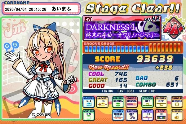 ダークネス4(EX) スコア更新 UPPER追加記念
